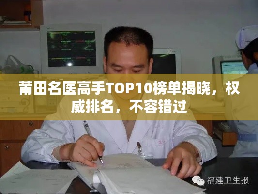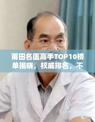 在莆田地区,医疗事业的发展日益繁荣,众多医生凭借精湛的医术和丰富的经验脱颖而出,以下是莆田地区名医高手排名前十名,他们以其卓越的医术和无私的奉献精神,赢得了广大患者的信赖和赞誉。
