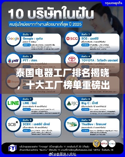 电器泰国工厂排名前十名,这些工厂在泰国电器制造业中具有较高的知名度和影响力,它们拥有先进的生产技术和设备,注重研发和创新,不断推出符合市场需求的新产品,为泰国电器制造业的发展做出了重要贡献,这些工厂也注重产品质量和售后服务,赢得了广大客户的信赖和支持。