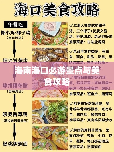 来到海口,当然不能错过美食,海口的美食以其独特的口感和丰富的口味而闻名,首先推荐您去尝试海南的特色菜肴如海南鸡饭、椰子鸡、东山羊等,还可以去海口的夜市品尝当地的小吃如清补凉、辣汤饭等,您可以品尝到地道的海南美食,感受到海南的味蕾之旅。