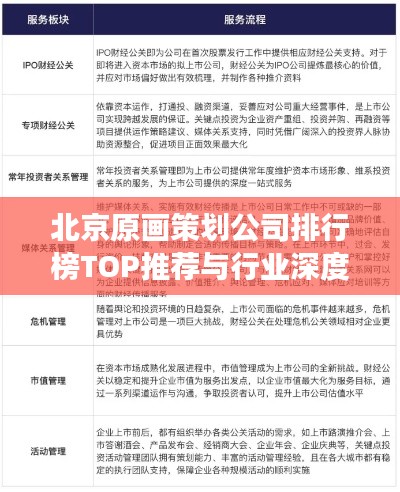 随着国内文化创意产业的蓬勃发展,原画策划行业逐渐崭露头角,北京作为中国的文化中心,汇聚了大量的原画策划公司,它们以专业的水准、丰富的经验和创新的思维,为行业提供了源源不断的动力,本文将为您介绍北京原画策划公司的排名及相关行业洞察。