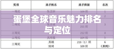 随着音乐产业的不断发展和全球化趋势的推进,许多音乐人及其作品在全球范围内获得了广泛的关注,蛋堡作为华语乐坛的杰出音乐人,其独特的音乐风格和作品深受粉丝喜爱,逐渐在全球范围内崭露头角,本文将探讨蛋堡的世界排名及其音乐魅力的全球定位。