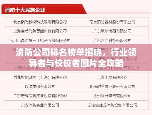 随着社会的不断发展和进步,消防行业作为公共安全领域的重要组成部分,其重要性日益凸显,消防公司的实力、技术和服务质量直接关系到人民生命财产安全,本文将根据消防公司的综合表现,生成一篇关于消防公司排名的文章,并附上相关图片,以揭示行业领导者与佼佼者。