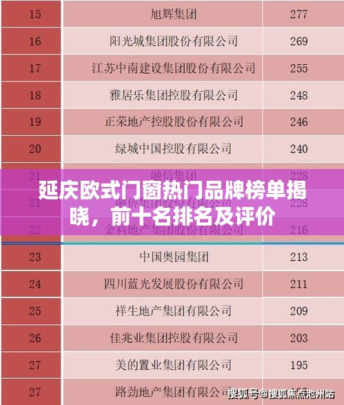 随着建筑行业的蓬勃发展,门窗作为建筑的重要组成部分,其品质与风格日益受到人们的关注,在延庆地区,欧式门窗因其独特的美学风格和优质的材料备受推崇,本文将为您介绍延庆地区欧式门窗排名前十名的相关信息。