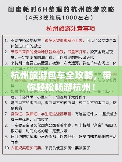 杭州旅游包车是一种便捷、舒适的旅游方式,通过提前准备、选择合适的包车服务、制定详细的行程计划,你可以在杭州的旅途中尽情享受美丽的风景和丰富的文化,希望这份杭州旅游包车攻略能为你提供帮助,祝你在杭州的旅程愉快!