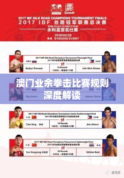 拳击运动在澳门地区日益受到关注,业余拳击比赛更是为广大拳击爱好者提供了展示技艺的舞台,为了保障比赛的公平、公正,澳门业余拳击比赛规则不断与时俱进,不断完善,本文将为您详细解析澳门业余拳击比赛规则的最新内容。