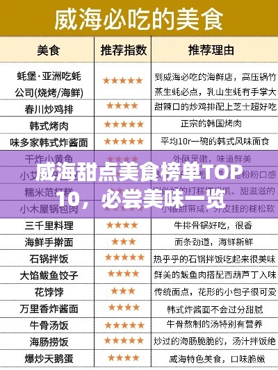 就是威海甜点美食排名前十名的介绍这些甜点各具特色口感各异但都能让你感受到甜蜜的幸福感,如果你是一个甜食爱好者那么来到威海一定要尝尝这些美味的甜点让你领略这座城市的甜蜜魅力。