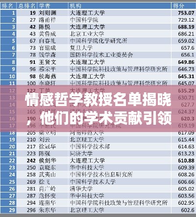 随着社会的快速发展和人们情感世界的日益丰富,情感哲学逐渐成为人们关注的焦点之一,各大高校纷纷公布了最新的情感哲学教授名单,这些教授们在情感哲学领域有着深入的研究和独到的见解,本文将介绍一些在情感哲学领域有所成就的教授,并探讨他们在该领域的贡献。