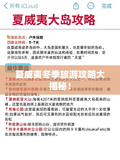 夏威夷是一个充满魅力的旅游胜地,冬天的夏威夷更是别有一番风情,通过本文提供的最新旅游攻略,希望你能更好地了解和享受这个美丽的岛屿,在旅行过程中,请注意个人安全,尊重当地的文化和习俗,祝你在夏威夷度过一个愉快的冬天!