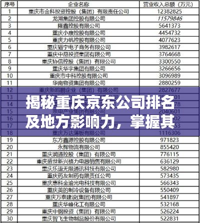随着电子商务的飞速发展,京东作为国内领先的电商平台,其业务遍及全国各地,重庆作为西部地区的经济中心,京东在此地的业务也蓬勃发展,本文将详细介绍重庆京东公司的排名、业务布局以及其对于当地经济的影响。