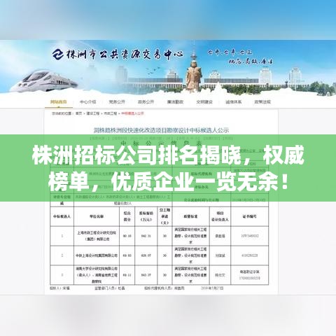随着经济的发展和社会的进步,招标行业在株洲市得到了长足的发展,招标公司作为连接企业与项目的桥梁,发挥着日益重要的作用,本文将探讨株洲招标公司的排名,介绍其服务质量和影响力,帮助企业选择合适的合作伙伴。