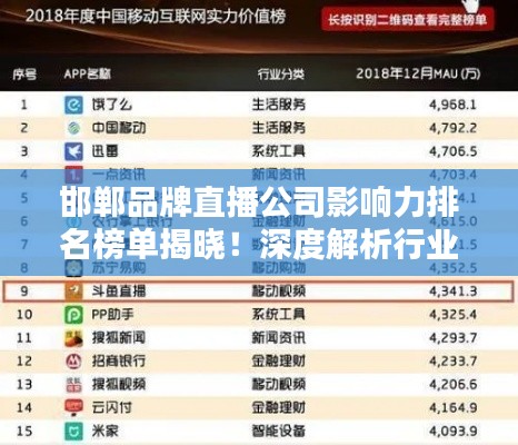 随着互联网的普及和直播行业的飞速发展,越来越多的品牌开始借助直播平台进行推广,在这样的背景下,邯郸的品牌直播公司也如雨后春笋般涌现,本文将探讨邯郸品牌直播公司的排名及其影响力。