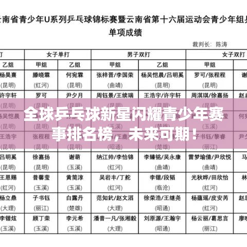 乒乓球作为中国的国球,一直备受关注,随着世界乒乓球青少年赛事的不断发展,越来越多的年轻选手崭露头角,成为球迷们关注的焦点,本文将围绕“世界乒乓球青少年赛事排名榜”展开,介绍一些优秀的青少年选手及其表现。