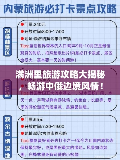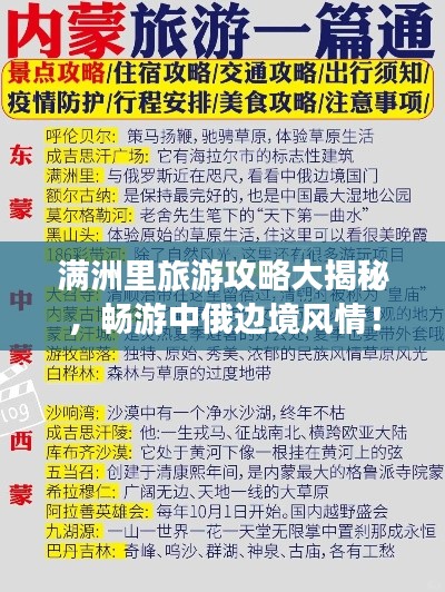 满洲里是一座充满魅力的城市,拥有丰富的旅游资源,通过这份旅游攻略,希望能为您的满洲里之行提供有益的参考,让您在旅途中尽情享受自然之美和文化魅力。