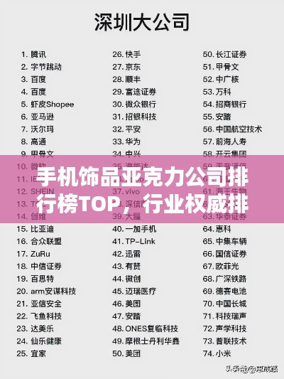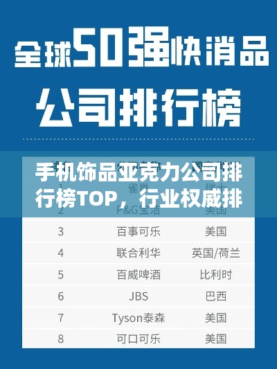随着智能手机的普及,手机饰品市场逐渐繁荣,其中亚克力材质的手机饰品因其独特的魅力备受欢迎,本文将介绍手机饰品亚克力公司的排名,帮助消费者了解市场中的优秀品牌。