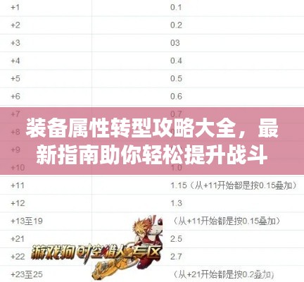 随着游戏版本的更新,装备属性转型已成为提升角色战斗力的关键手段,本文将为大家带来最新的装备属性转型攻略,帮助大家更好地适应游戏环境,提升游戏体验。
