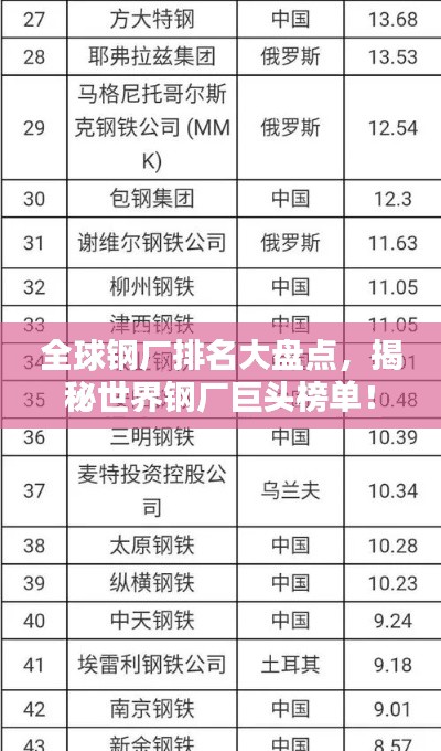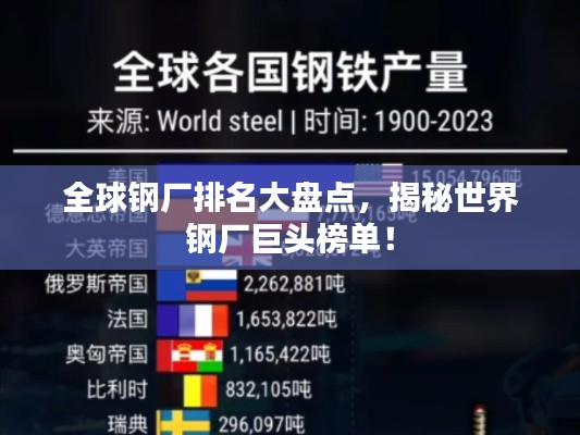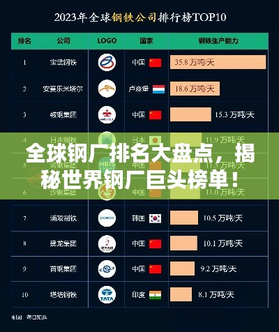 钢铁行业是全球经济的重要组成部分,世界各地的钢厂不断在技术、规模、产量等方面展开竞争,以下是全球范围内的一些著名钢厂的排名,它们在全球钢铁行业中占据重要地位。