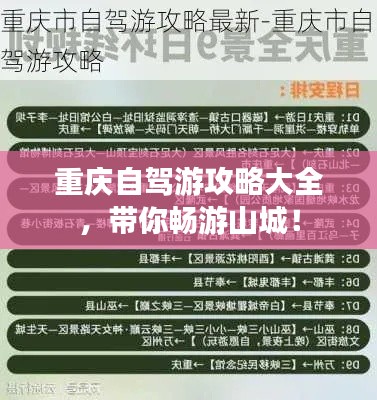 重庆,这座充满魅力的山城,以其独特的地理风貌、丰富的历史文化和美食著称,自驾游重庆,不仅能深度体验这座城市的魅力,更能随心所欲地探寻那些不为人知的秘境,以下是一份精心准备的自驾重庆旅游攻略,希望能为您的重庆之行提供有益的参考。