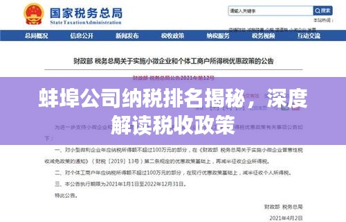 了解蚌埠公司交税排名及其背后的税收政策,对于理解蚌埠市的企业发展状况具有重要意义,作为企业,应当关注税收政策的变化,合理利用税收优惠政策,减轻税负,提高盈利能力,企业还应注重自身的经营策略和技术创新,不断提高市场竞争力,本文旨在为读者提供全面的信息,帮助读者了解蚌埠市的公司交税排名及税收政策。