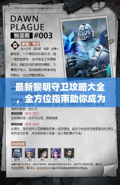 黎明守卫作为一款受欢迎的游戏,吸引了众多玩家的加入,为了帮助玩家更好地掌握游戏技巧,提升战斗力,本文将为大家分享最新的黎明守卫攻略,本文旨在提供全方位的指南,助你成为顶尖玩家。