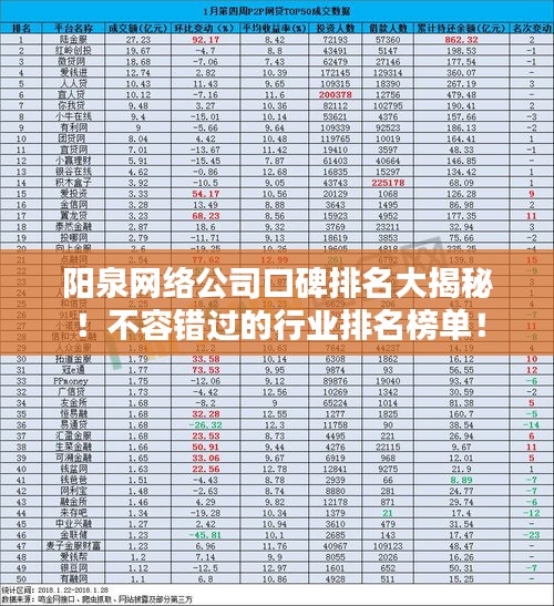 随着互联网的飞速发展,网络公司在各地的业务日益繁荣,阳泉市作为一个重要的城市,其网络公司的口碑和排名也备受关注,本文将为您揭示阳泉网络公司的口碑排名,带您了解这些公司的优势和特点。