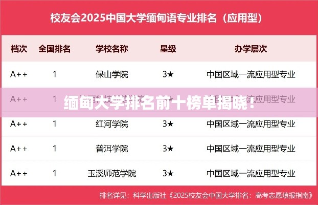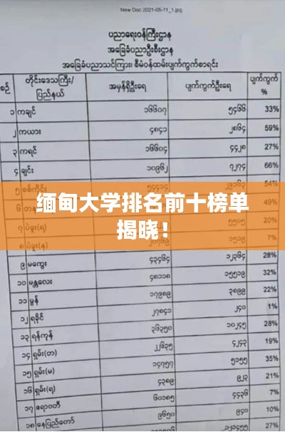 缅甸作为东南亚国家之一,近年来其教育事业逐渐受到关注,随着教育水平的提高,缅甸的大学教育也在不断发展,本文将介绍缅甸大学的排名前十名,为广大读者提供参考。