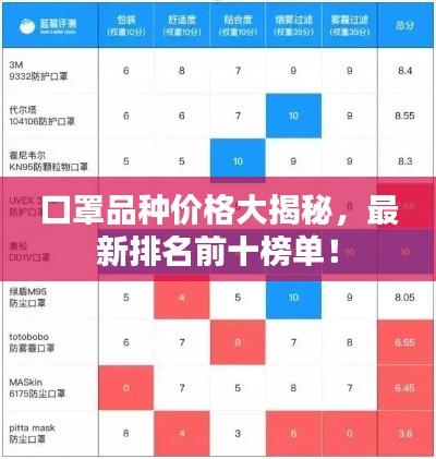 随着全球健康意识的提高和疫情的常态化,口罩已成为我们日常生活中的必备品,市场上口罩品牌和种类繁多,价格各异,本文为您介绍口罩品种价格排名前十名,以便您在购买时做出更明智的选择。