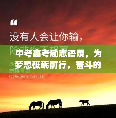 在这个充满挑战与机遇的时代,中考和高考无疑是人生的重要里程碑,面对这两大考试,我们需要坚定的信念和毅力,勇敢地去追求梦想,以下是一些中考高考的励志文字语录,希望能为大家带来正能量,激发奋斗的力量。