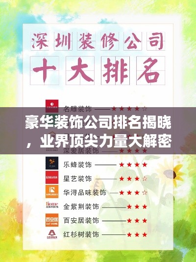 随着社会的快速发展,人们对生活品质的追求越来越高,豪华装饰已经成为了一种时尚和追求,在这样的背景下,各大豪华装饰公司纷纷崭露头角,以其卓越的设计理念和精湛的工艺技术赢得了广大消费者的青睐,本文将为您揭示豪华装饰公司的排名,帮助您更好地了解业界顶尖力量。