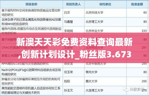 为了使广大企业和个人能够更方便地获取“新澳天天彩免费资料查询最新,创新计划设计_粉丝版3.673”的相关信息和资源,特区政府推出了以下免费查询服务: