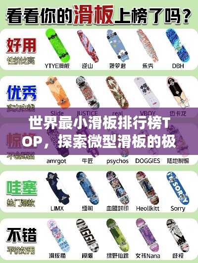 滑板运动以其独特的魅力在全球范围内广受欢迎,无论是街头巷尾,还是专业赛场,都能见到滑板的身影,而在众多滑板品牌和型号中,有一些因其小巧精致、性能卓越而备受瞩目,被纳入世界最小滑板排名,以下将为您详细介绍这些滑板的独特之处。