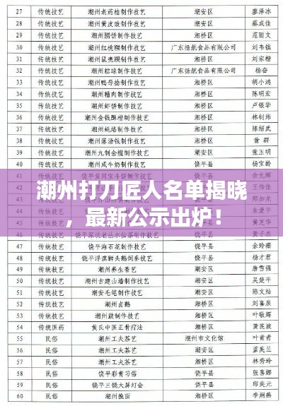 随着传统文化的复兴,潮州打刀技艺日益受到人们的关注和重视,作为一项具有悠久历史和精湛技艺的传统文化,潮州打刀技艺的传承和发展显得尤为重要,为了推动潮州打刀技艺的传承和创新,潮州市政府近期公示了最新的打刀匠人名单,以下是相关内容的详细介绍。