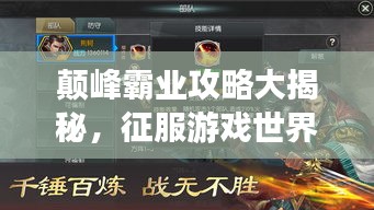 颠峰霸业作为一款热门的策略游戏,吸引了众多玩家的加入,在这个充满挑战与机遇的游戏世界里,如何成为顶尖玩家,成就一番霸业?本文将为你带来最新的颠峰霸业攻略,助你征服游戏世界。