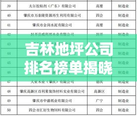 随着城市化建设的不断推进,地坪行业逐渐崭露头角,成为建筑领域中的重要组成部分,吉林省作为我国重要的工业基地之一,地坪行业也得到了长足的发展,本文将介绍吉林地坪公司排名榜,让读者了解吉林省内哪些地坪公司在行业内具有较高的知名度和影响力。