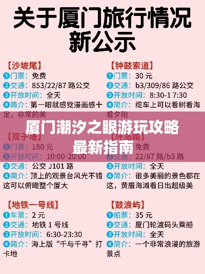 厦门,这座美丽的滨海城市,以其独特的海岛风情和丰富的旅游资源吸引着无数游客,而潮汐之眼,作为厦门新晋的网红打卡点,更是备受瞩目,本文将为你提供一份最新的厦门潮汐之眼攻略,帮助你更好地了解和探索这一神奇景点。