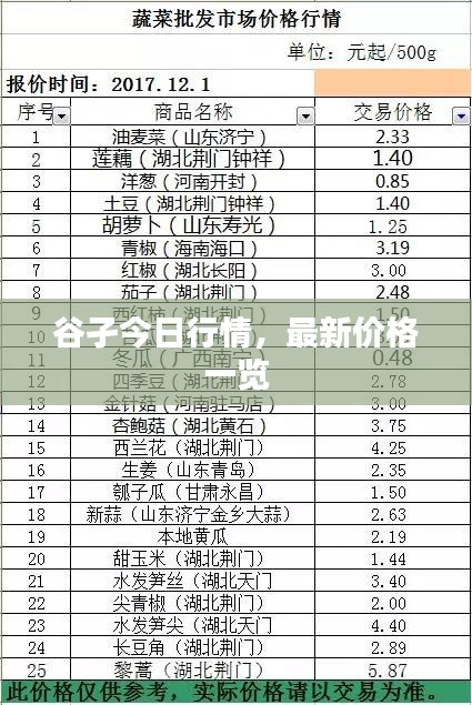 随着全球经济的不断发展和人们生活水平的提高,粮食价格一直是人们关注的焦点之一,谷孑作为重要的粮食作物之一,其价格自然也是备受关注,本文将介绍谷孑今日最新价格的情况。