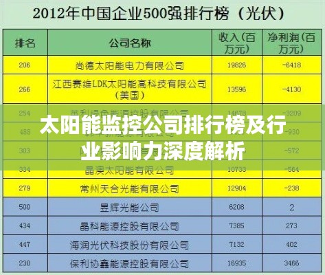随着科技的不断发展,太阳能监控领域逐渐崭露头角,太阳能监控公司如雨后春笋般涌现,本文将探讨太阳能监控公司的排名及其行业影响力,为读者提供全面的视角。