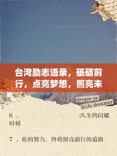 台湾,这片充满活力和创造力的土地,孕育了无数励志的话语,这些语录,如同明灯照亮前行的道路,激励着无数人为梦想努力奋斗,本文将带你领略一些经典的励志台湾语录,感受其中的力量与智慧。