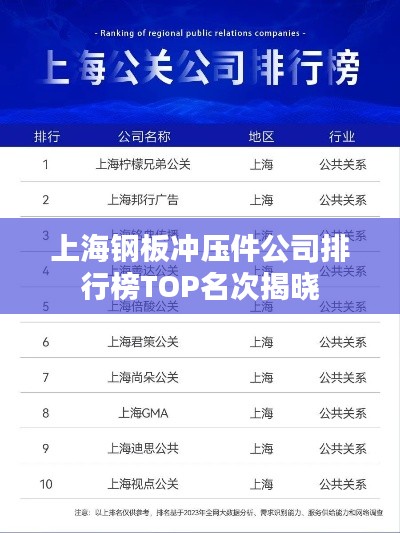 随着制造业的飞速发展,钢板冲压件的需求与日俱增,在这其中,上海凭借其得天独厚的地理优势、丰富的工业基础和先进的制造技术,孕育了一大批优秀的钢板冲压件公司,本文将为您揭示上海钢板冲压件公司的排名,以助您更好地了解这个行业。
