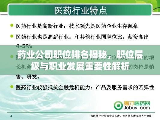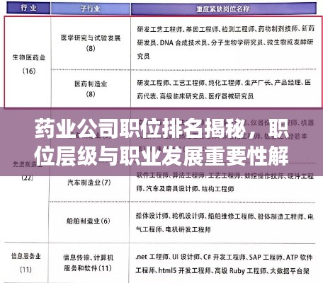 随着医药行业的快速发展,药业公司职位排名逐渐受到人们的关注,本文将详细介绍药业公司的主要职位及其排名,分析这些职位的职责和重要性,帮助读者更好地了解药业行业的职业发展方向。