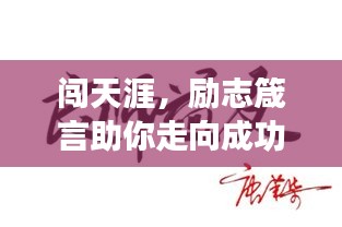 闯天涯的励志语录旨在激励我们勇敢追梦,挑战自我,坚持不懈,永不言败,无论遇到什么困难,都要保持积极心态,勇往直前,我们也要注重学习进步,提升自我竞争力,把握机会,创造未来,让我们一起努力,闯出自己的一片天地!记住这些励志语录并付诸实践的人将会在未来的道路上勇往直前并取得成功!让我们一起努力成为更好的自己!