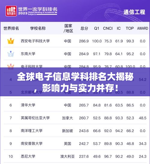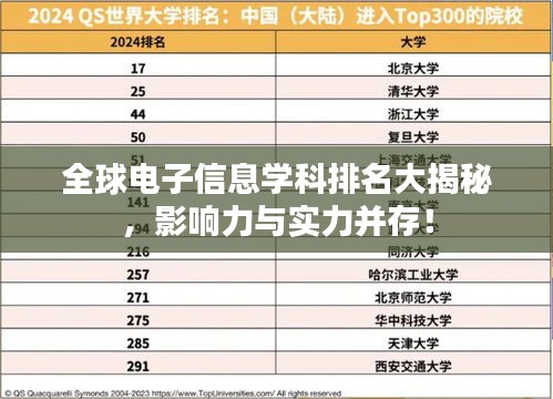 随着科技的飞速发展,电子信息学科在全球范围内的重要性日益凸显,本文将探讨世界电子信息学科的排名情况及其影响力,分析排名背后的因素,并展望未来的发展趋势。