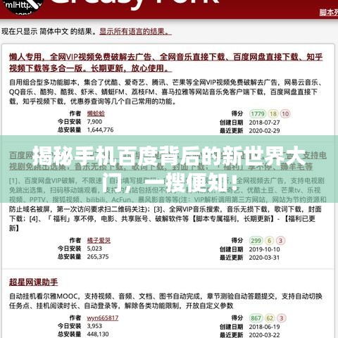 在移动互联网时代,手机已经成为我们获取信息的主要渠道,百度搜索以其简洁、快速的界面设计和强大的搜索功能,成为我们手机上的必备应用,无论是学习、工作还是生活,我们都可以通过百度快速找到所需的信息。
