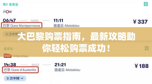 通过本文提供的大巴黎购票攻略,希望能帮助你顺利购买心仪活动的门票,在旅行过程中,记得提前了解活动信息、选择合适的购票渠道,并遵守相关规定和注意事项,祝你在大巴黎度过愉快的旅行!