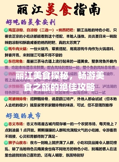 丽江,这座古老而美丽的城市,以其独特的民俗文化、自然风光和美食文化吸引着无数游客,你不仅可以欣赏到美丽的风景,感受到浓郁的民族文化,还可以品尝到各种美味佳肴,本文将为你呈现一份详尽的丽江美食攻略旅游,带你领略丽江的美食之旅。