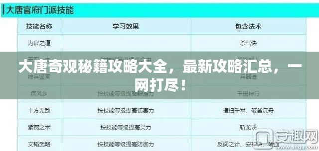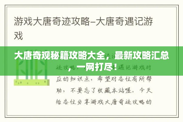 大唐世界,瑰丽奇幻,神秘莫测,本文旨在为广大玩家提供一份详尽的《大唐奇观秘籍大全最新攻略》,帮助大家在这个充满奇遇和挑战的世界里,更好地探索未知,战胜困难,收集珍宝。