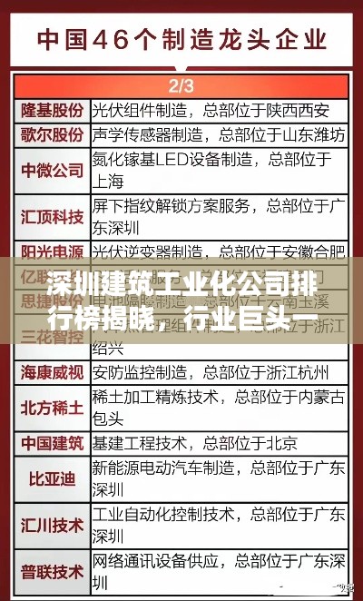 随着城市化进程的加速,建筑行业在深圳市的发展迅猛,建筑工业化公司如雨后春笋般涌现,本文将探讨深圳建筑工业化公司的排名,以助您了解行业内的佼佼者。