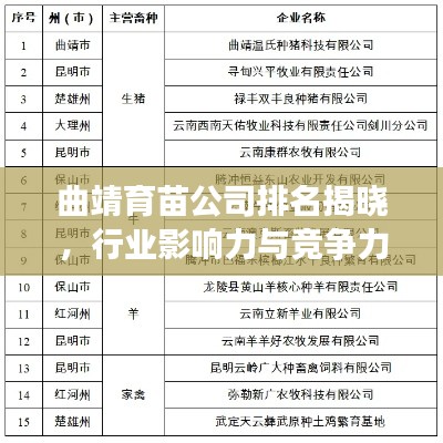 随着社会的快速发展,农业领域也在不断创新和进步,育苗作为农业生产的重要环节之一,其质量直接关系到农作物的生长和产量,曲靖市作为云南省的重要城市之一,其育苗行业也取得了长足的发展,本文将介绍曲靖育苗公司的排名及其行业影响力。