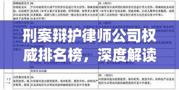 随着法治建设的不断推进,刑事辩护领域日益受到公众关注,刑案辩护律师作为刑事司法公正的重要保障力量,其专业能力和经验水平对案件结果具有重要影响,本文将围绕“刑案辩护律师公司排名”这一主题,介绍国内领先的几家刑案辩护律师公司,并对其特点、优势进行深入剖析。