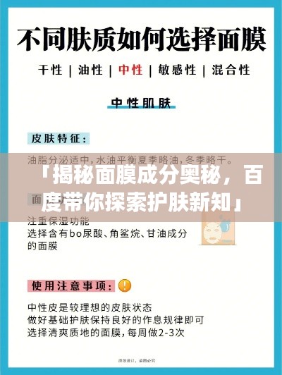 通过百度搜索“做面膜的成分”,我们可以了解到更多关于面膜的知识和信息,在选择和使用面膜时,要关注其成分表、注意使用方法和频率,并结合日常护肤习惯,让肌肤保持健康和美丽。
