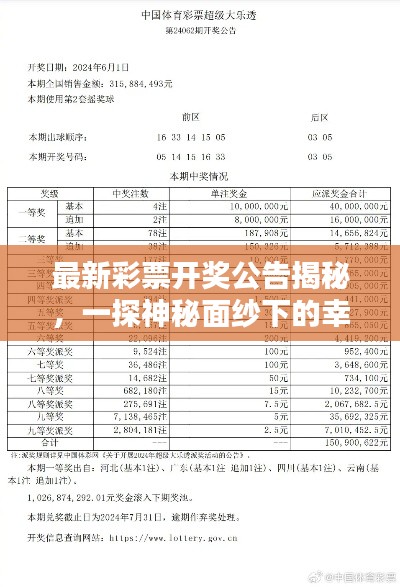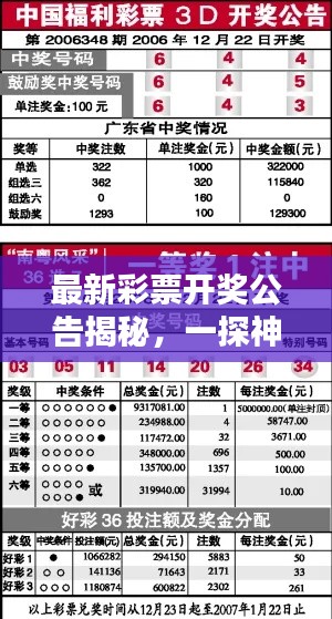 在这个充满惊喜与期待的时代,彩票已经成为许多人生活中的一部分,每天,无数彩民怀揣梦想,关注着彩票开奖公告的最新查询,本文将为您详细介绍今日开奖公告最新查询的相关信息,带您走进彩票的世界,揭开这神秘面纱的一角。